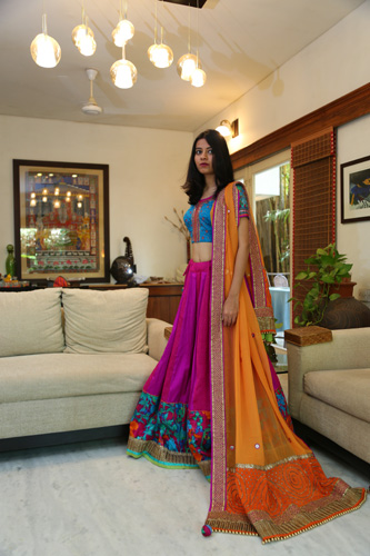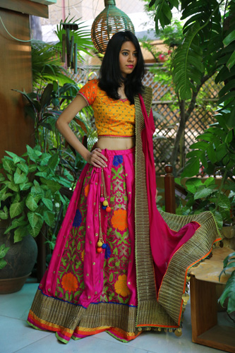 ![]() Plain and printed raw silk chaniya with georget and crepe silk odhani |