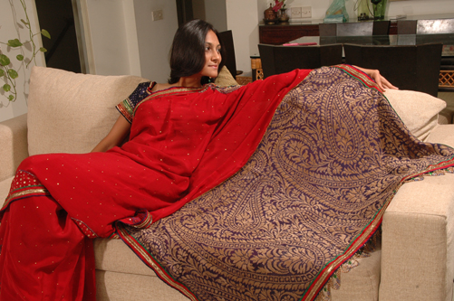 ![]() Maroon Crepe Saree with Jamavar Palav |