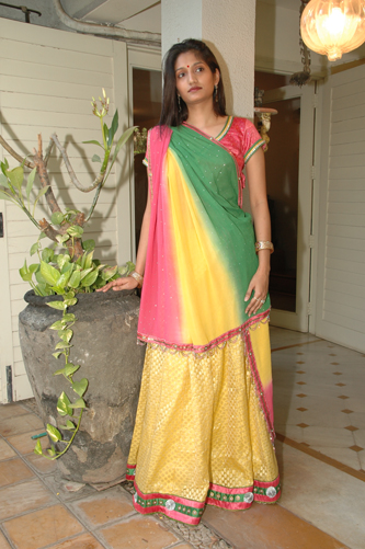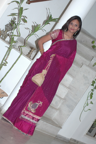![]() Magenta Crepe Laheria Saree with Badla & Heavily Worked Blouse. |